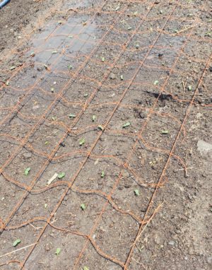 網の一つ一つにひまわりのタネを一つずつ植えております。
