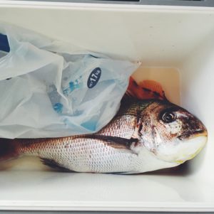 真鯛特有の三段引き、いやーー最高です!!水面間近になるとブクブクぶくっと気泡がでてくるのが真鯛の特徴。