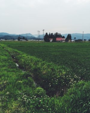 飯豊町は飯豊山系からの雪解け水が豊富なので、雨が降らなくてもそれほど心配はないです。飯豊山にはまだまだ雪が残ってます。