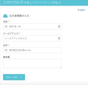 ③日本円の商品価格と同額のビットコイン(現在のレートにて換算)を使って、お客様がお持ちのcoincheckアカウント、もしくは他のウォレットを通してお支払い。